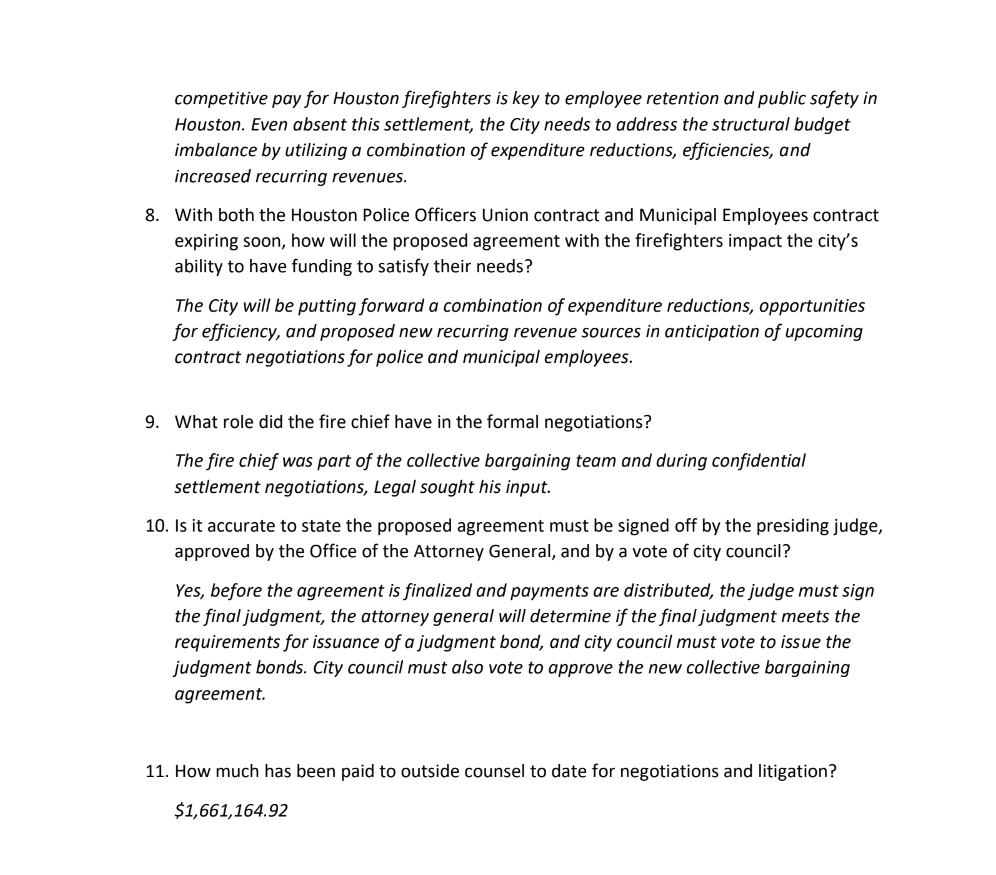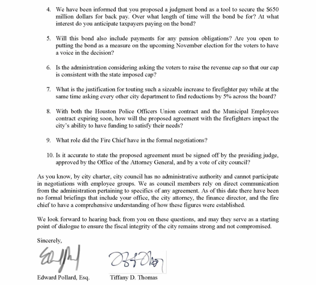 The reply letter below was provided by Mary Benton, Mayor John Whitmire's director of communications.